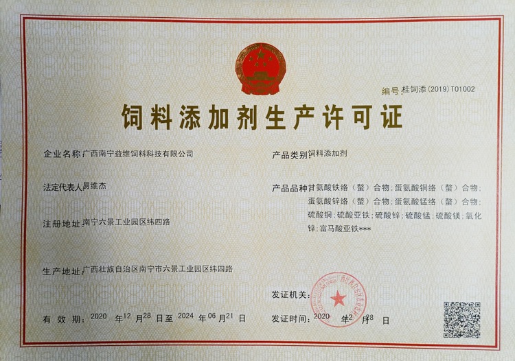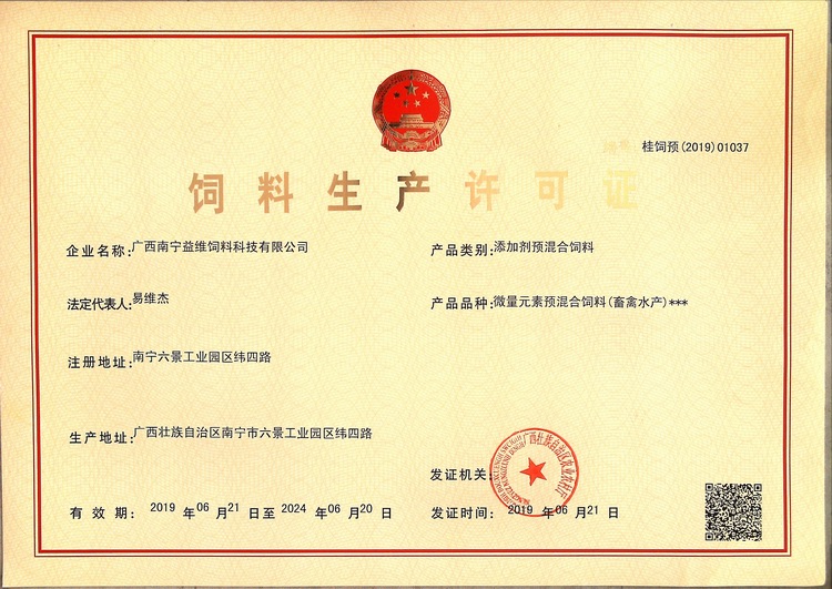 益維—添加劑預(yù)混合飼料生產(chǎn)許可證